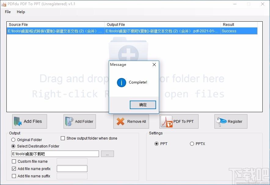 输入PDF文件,可输出PPT或PPTX文件
