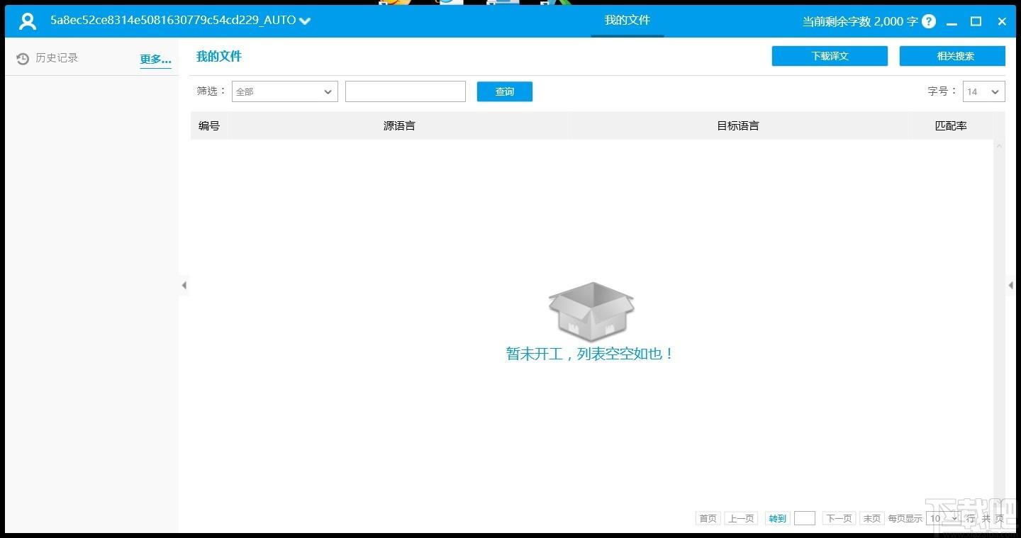 8、点击我的文件弹出软件文件管理弹框,该弹框可以进行译文下载,同时可以对译文进行搜索操作