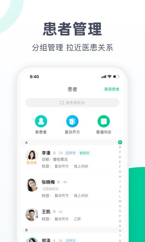 医生可以在线管理接诊过的患者,加强患者医嘱/医学建议的依从性,从而提高患者的临床疗效。